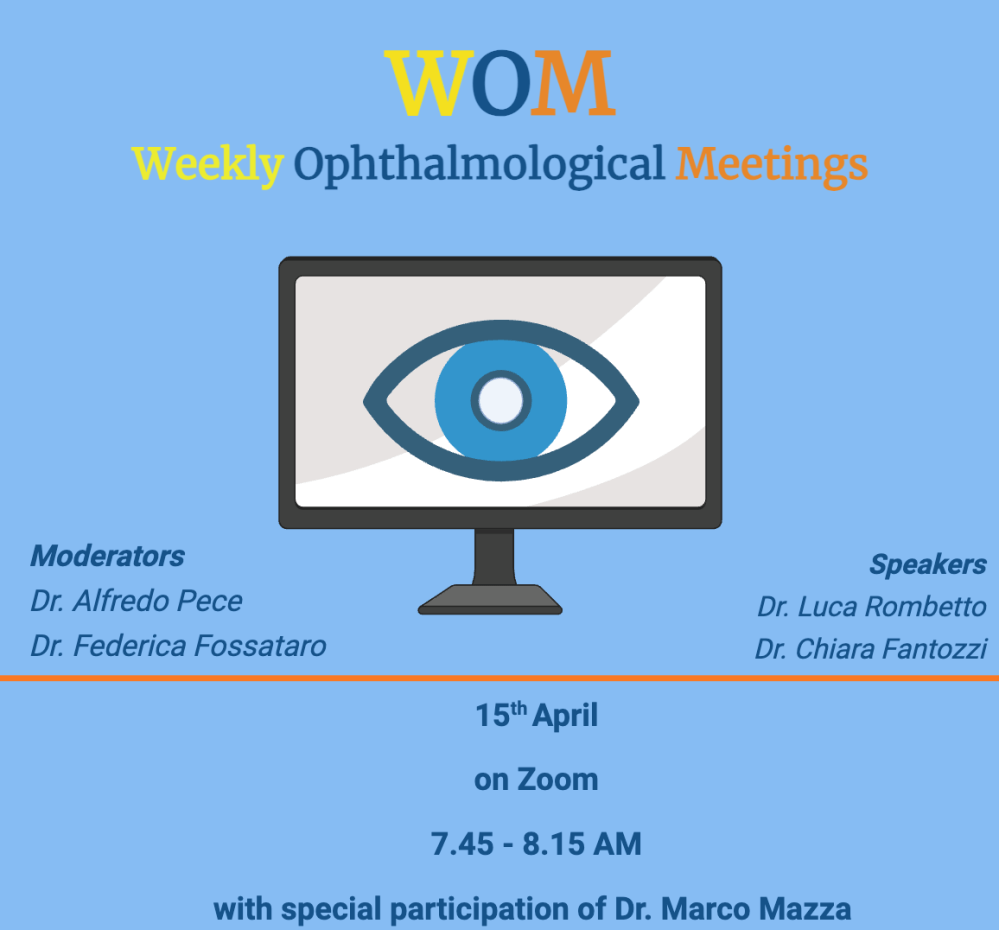 Un sentito grazie alla Dott.ssa Federica Fossataro ed al Dott. Alfredo Pece per l’invito al WOM (Weekly Ophthalmological Meetings), che con tanta dedizione ed impegno organizzano ogni settimana, creando uno spazio di confronto costante.